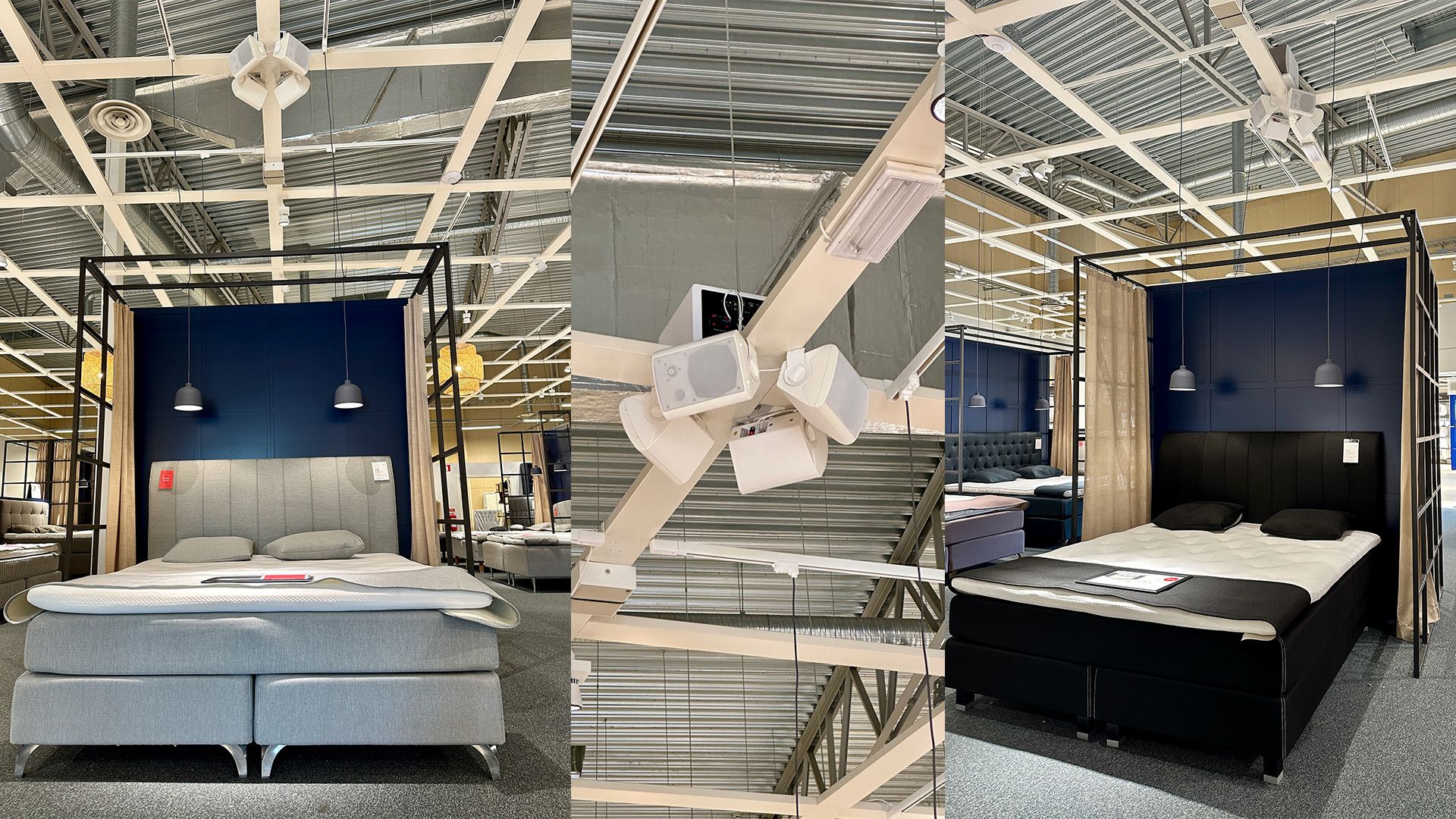 Mood Nordic was tasked with curating a musical environment that would resonate with a diverse customer base while enhancing the shopping experience at KungSängen’s showrooms. The goal was to deliver a high-quality sound system capable of playing relaxing and uplifting music at a low volume, ensuring that it created a pleasant atmosphere without overwhelming customers.